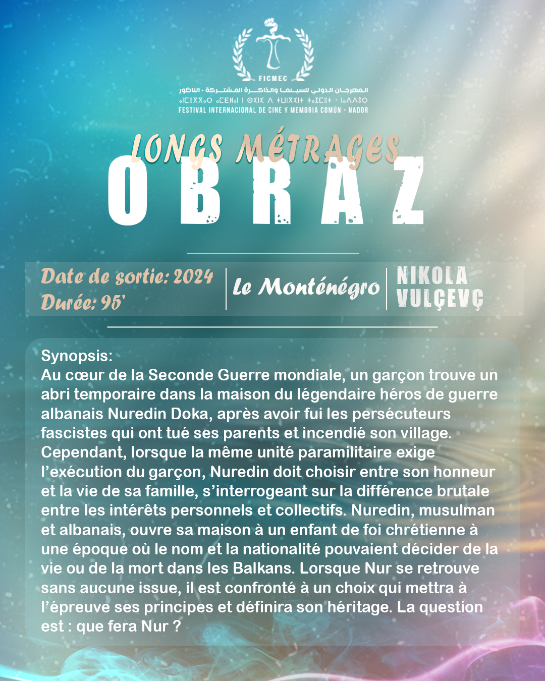 Toutes ces œuvres partagent un objectif commun : explorer le thème de la « Mémoire de la Paix » à travers des récits humains poignants, offrant de nouvelles perspectives sur la réconciliation, la résilience et la construction d’un avenir commun. Nous vous invitons à découvrir ces récits cinématographiques exceptionnels qui sont au cœur de notre message.